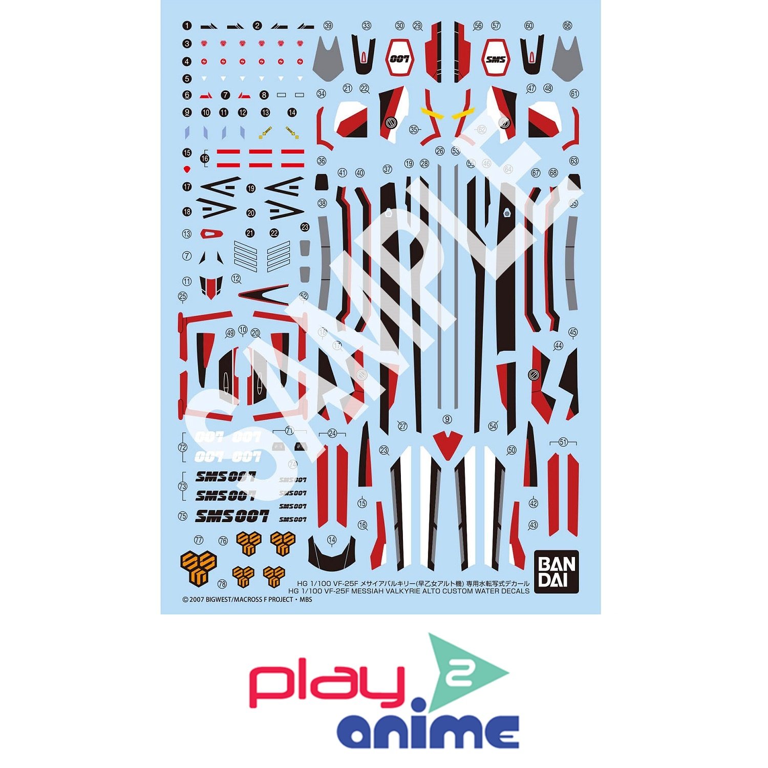 HG 1/100 VF-25F MESSIAH VALKYRIE ALTO CUSTOM WATER DECALS